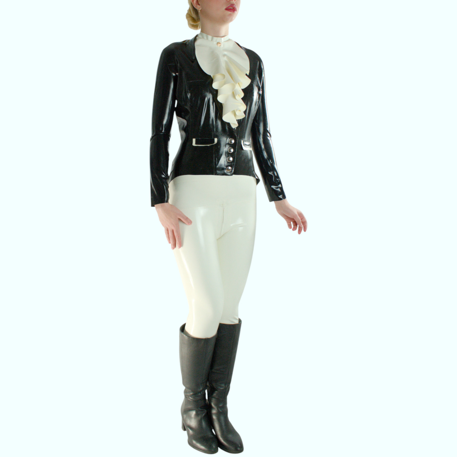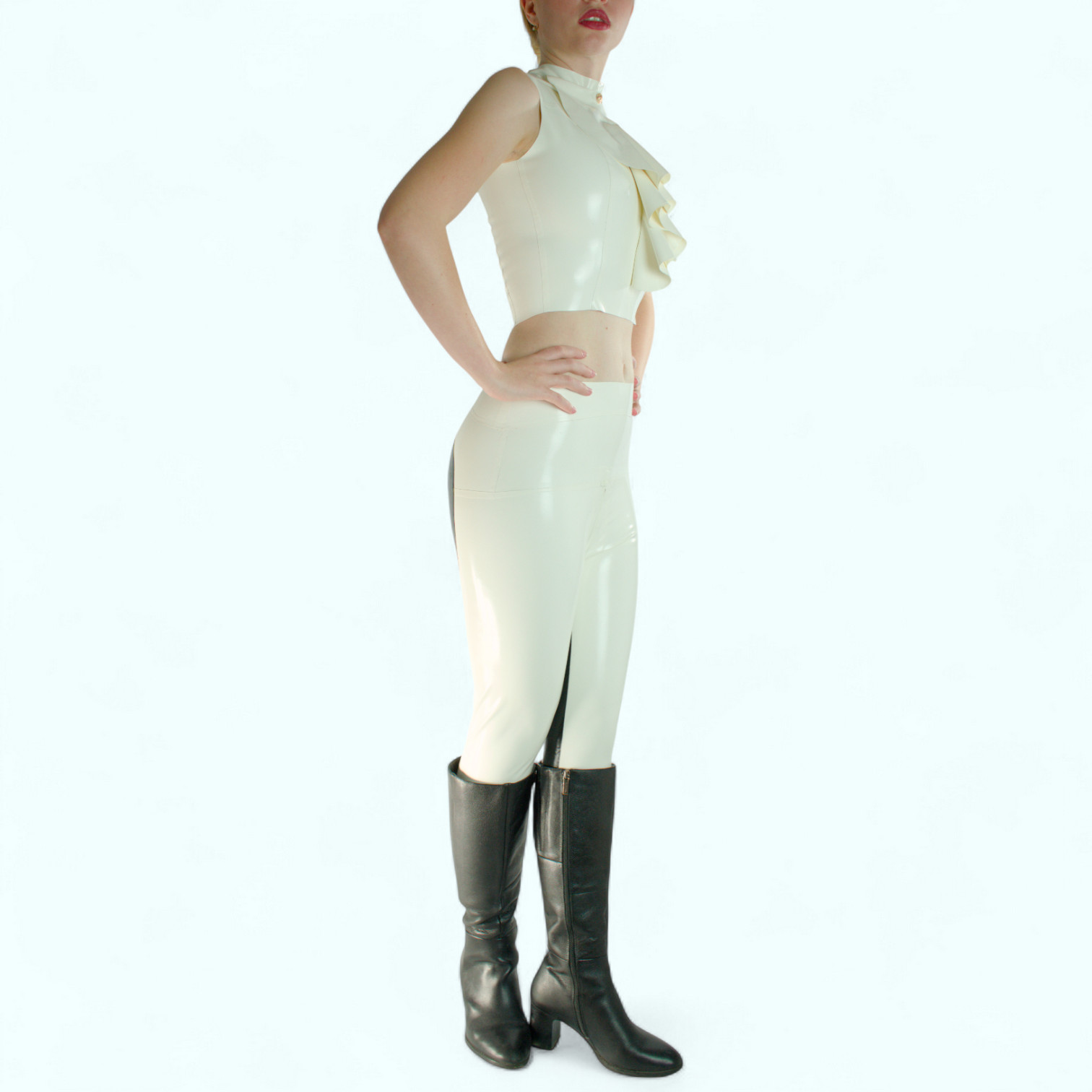 Build your look upon the foundation of flawless elegance with the Fluorea Latex Riding Leggings — a statement piece designed to embody strength, confidence, and refined allure. Crafted to perfection, these leggings pair beautifully with our Latex Riding Jacket and White Top, creating a striking riding-inspired ensemble that commands attention.