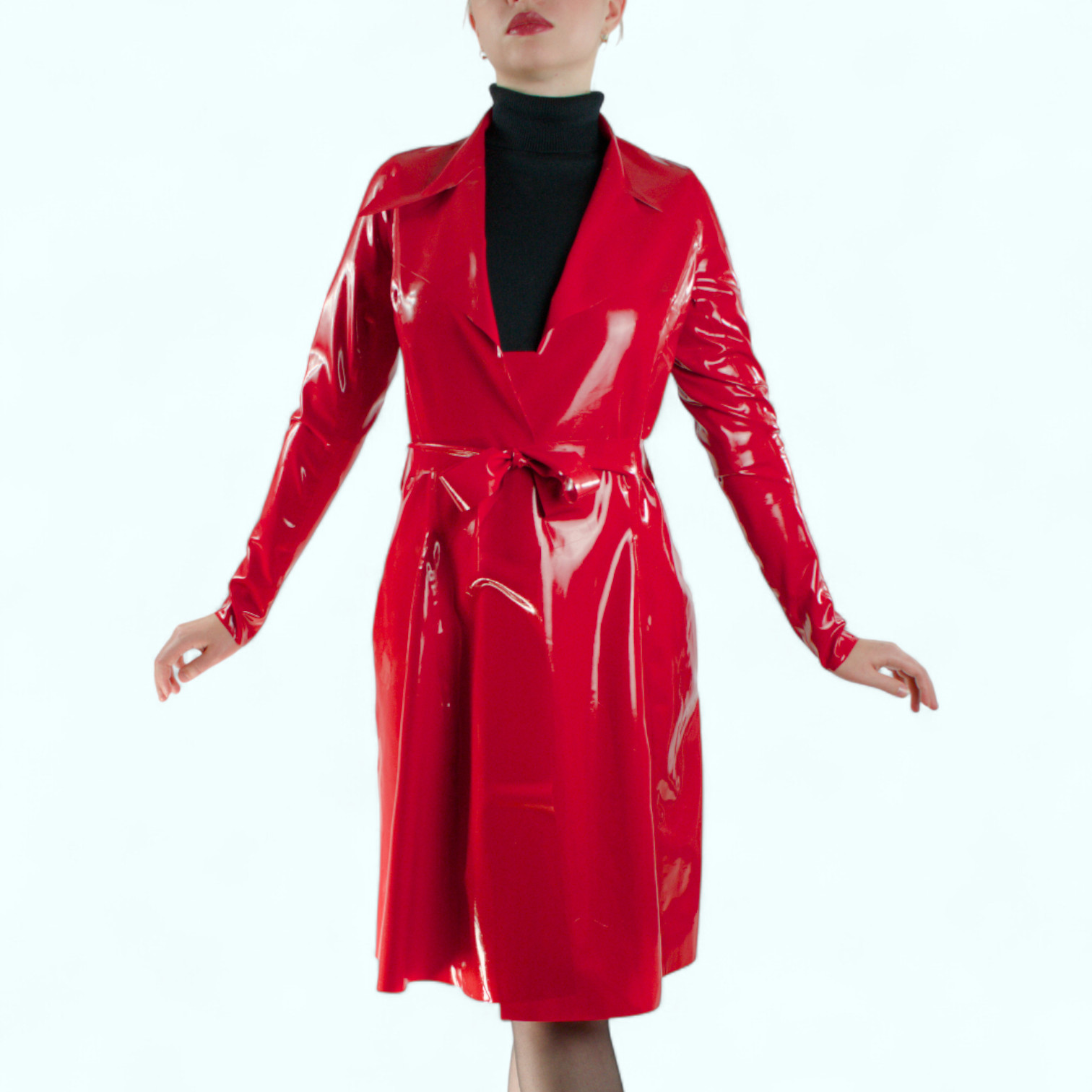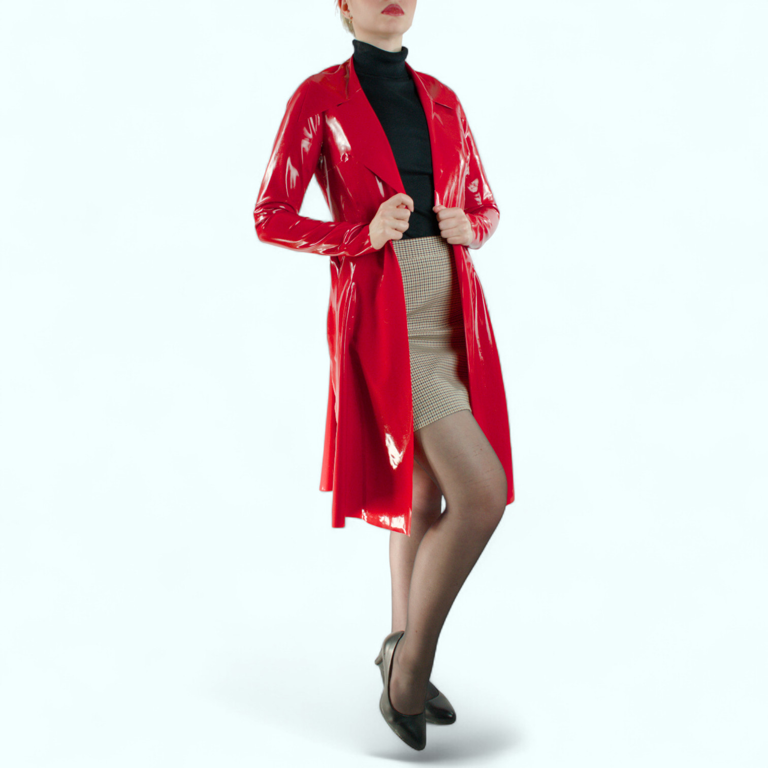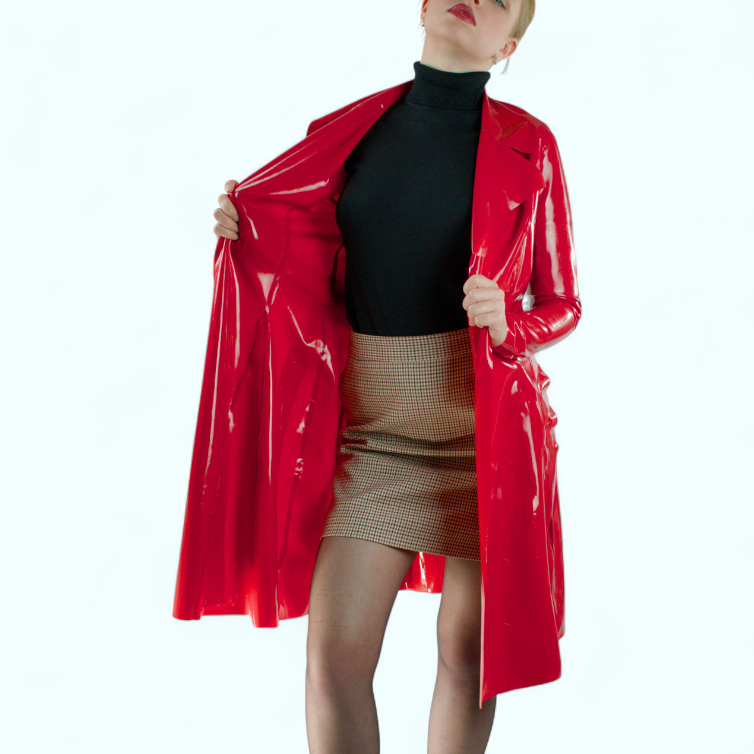 Elevate your presence with the Sulfea Latex Coat — a bold infusion of power and poise crafted from sleek, natural latex for an unmistakable modern silhouette. With its refined tailored lines and full-length design, it offers commanding elegance while embracing the contemporary edge of latex couture.